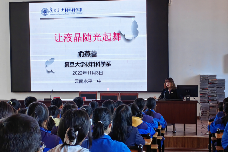 俞燕蕾教授以“让液晶随光起舞”为永平一中的学生们做了极为精彩的讲座,俞教授从“物质三态”讲起,由简入繁,用生动风趣的语言、清晰的思路从“液晶的发现”、“观察”、“本质”,讲到了如今液晶技术对人类生活的影响与帮助。俞教授将一个大学的科研讲座,简化成了适合高中生的科普小课堂,使学生陶醉其中、受益匪浅。讲座之后,俞教授给学生们送上了由复旦性爱网 多名教授共同推荐的科普书籍,希望学生热爱科学,将来为国家科技振兴贡献力量。
