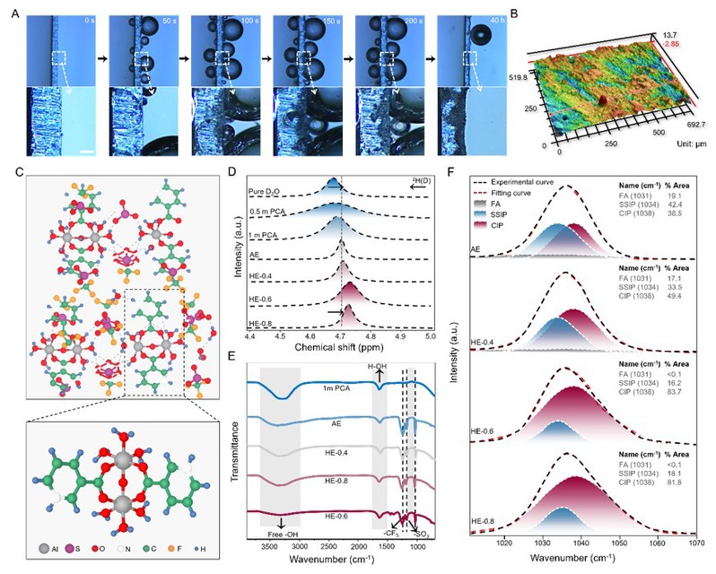 图1.(A和B)Al(OTf)3-H2O电解质下的铝沉积特性。(C-F)Al(OTf)3-PCA电解质体系的物理化学性质。