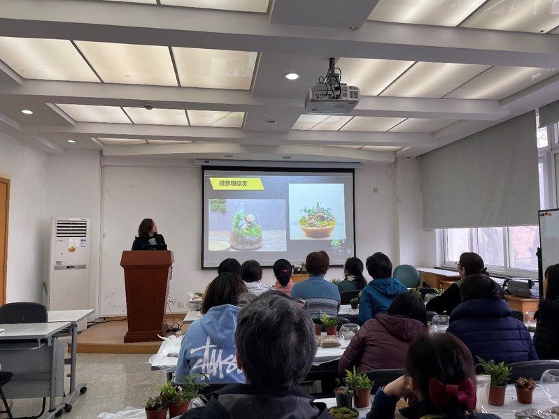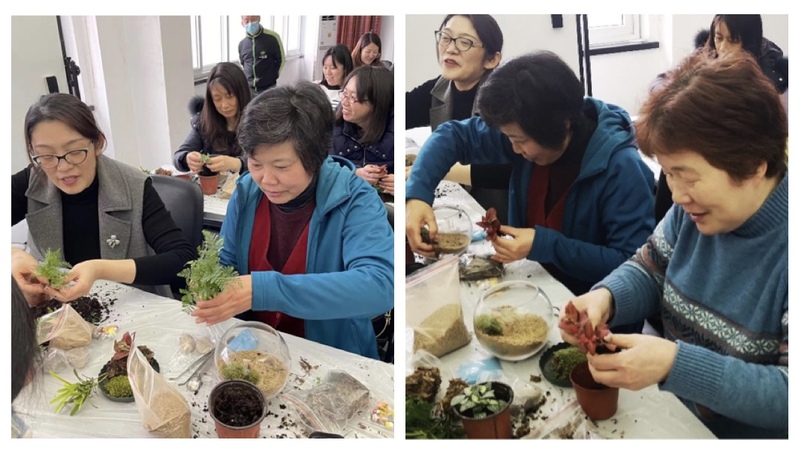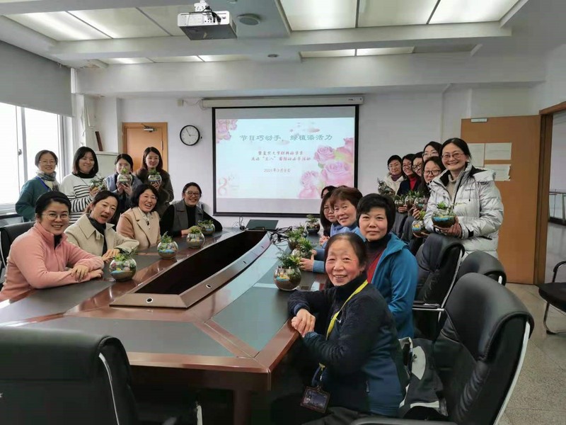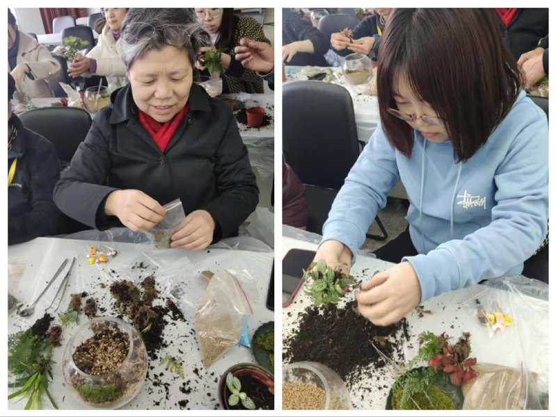 为庆祝第111个三八国际妇女节,性爱网 20余位女教师在先进材料楼202会议室举行“节日动巧手,绿植添活力”的创意微景观制作活动。
