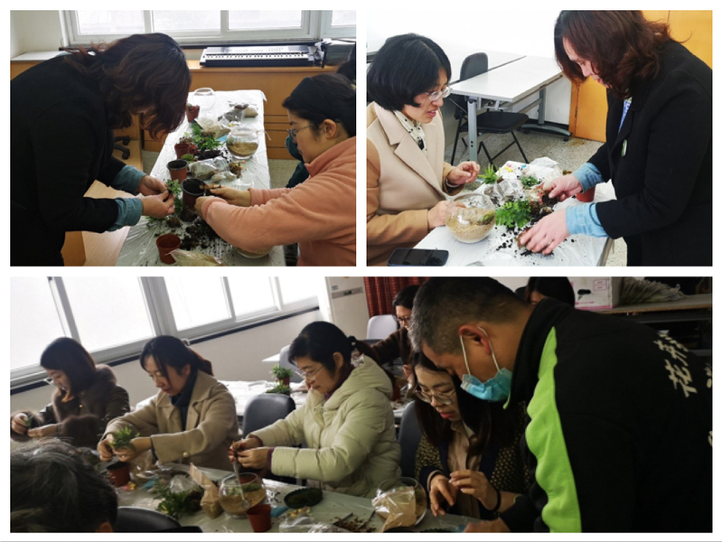 此次活动得到系党委的大力支持,亦吸引了校人才工作办公室的美女们参加。各位老师带着自己精心制作搭配的微景观作品点缀办公室。在这个春天,为办公室带去一份绿意,一份生机。