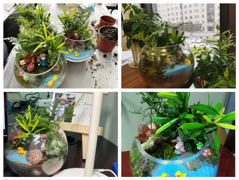 伴随着小摆件的植入,为微景观中宁静深远的自然风光带去一丝灵动。既有返璞归真的韵味,又保留了一丝童真。活动给我们快节奏的生活带来一份美好装点环境,调节情绪。