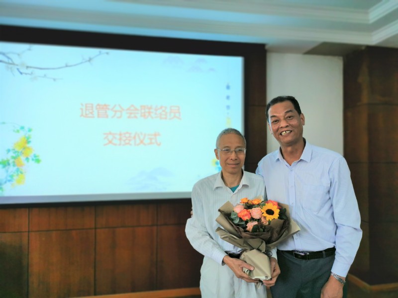 接下来,倪峰老师简要介绍了退管分会的工作安排,宣布从今年十月起,由余剑萍老师接替郑国祥老师担任联络员。包涵老师为郑老师送上鲜花,感谢郑老师近四年来为系退休工作的付出。郑老师在任期间,时时关注每一位退休老师的身体和家庭状况,并及时与学校和系里沟通,为老同志们送上温暖和关怀。郑老师分享担任联络员期间的心得体会,表示虽然自己卸任了,但仍然会一如既往地支持系里的退管工作。余剑萍老师表示,今后会与大家保持沟通和交流,尽心尽力做好为老服务工作。