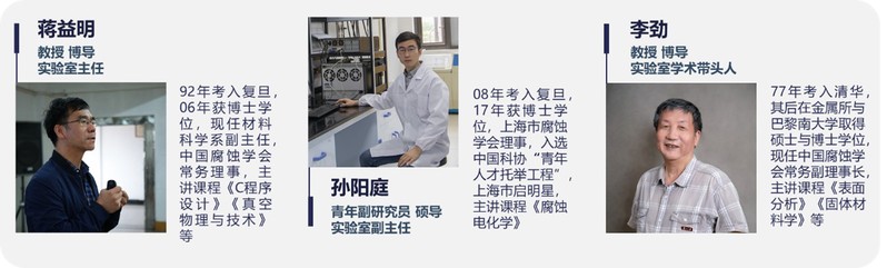 腐蚀团队主要研究方向为:(1)耐蚀合金腐蚀(200系、300系、400系、600系、800系、双相不锈钢、哈氏合金等);(2)电子功能金属腐蚀(含Si/SiC/ITO/SiO2/Cu/Ag/Au/Ti/Al/Ni/Sn/Ag3Sn等/及系列焊料/助焊剂/涂层系列体系)。以不锈钢方法库和数据库、电子材料方法库和数据库为基础,服务于国家重点行业的设计选材、配方与工艺优化、腐蚀临界参数范围确立、失效分析、失效现象与规律验证、寿命预测。建立标准评价方法及制定技术50余项,服务于60余家制造企业,承担课题100余项。团队毕业研究生主要从业于国家重要制造企业,在腐蚀研究与应用领域形成鲜明特色和广泛影响。