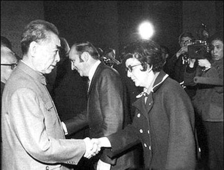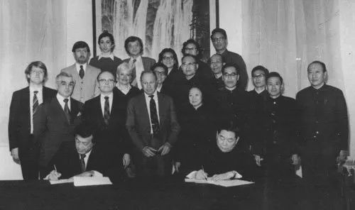 1971年4月14日 周恩来总理会见应邀来访的加拿大、哥伦比亚、英格兰、尼日利亚和美国乒乓球代表团全体成员,并发表重要讲话。邀请美国乒乓球代表团来访,是毛泽东亲自决定的。这一举措大大推动了打开中美关系大门的历史进程。