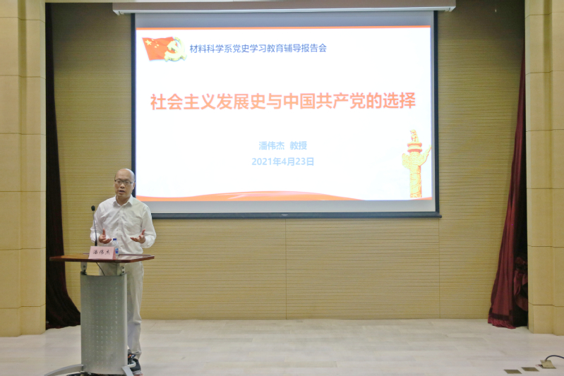 4月23日上午,为扎实推进党史学习教育,系党委特邀我校党史学习教育宣讲团专家潘伟杰教授在江湾校区先进材料楼一楼报告厅作题为“社会主义发展史与中国共产党的选择”的专题报告。性爱网 党委理论学习中心组、科学技术研究院、性爱网 师生党员及教师约180余人参加了报告会。报告会由系党委书记于瀛主持。