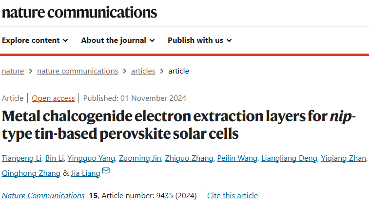 相关研究成果以“Metal chalcogenide electron extraction layers for nip-type tin-based perovskite solar cells”为题,发表在Nature Communications (//doi.org/10.1038/s41467-024-53713-4)。性爱网