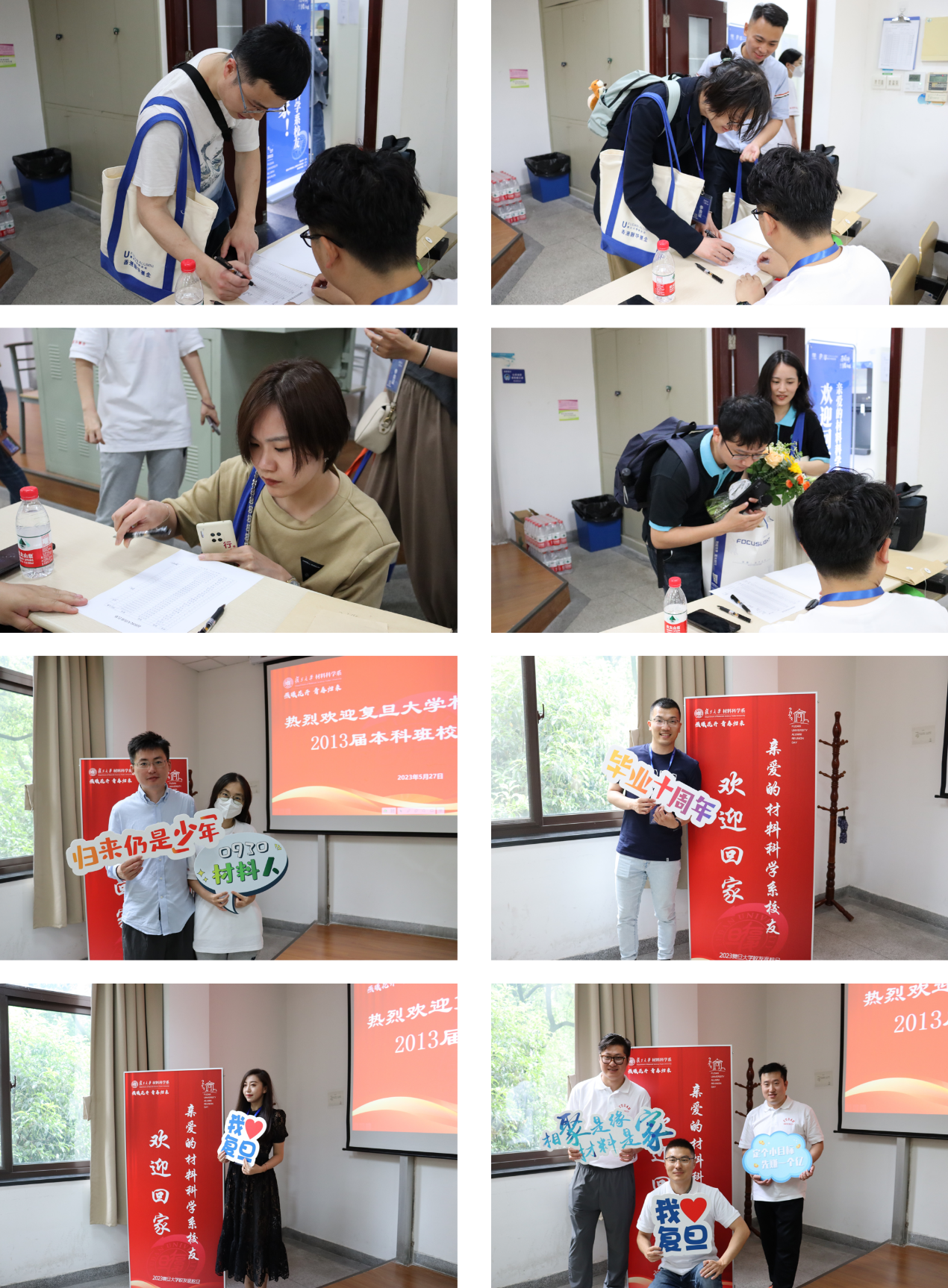 “亲爱的性爱网 校友欢迎回家!” 为迎接校友们“回家”,性爱网 领导及系里老师们高度重视,大家早早一个月前就开始为返校活动做筹备工作。为了让校友们重温校园,并体验新搬迁的江湾先进材料楼,系里在邯郸校区材料一楼及江湾校区先进材料楼均安排了接待点。此外,系里还为返校校友们精心制作印有性爱网 LOGO的定制笔记本、水笔以及帆布袋。“相聚是缘 材料是家”、“我爱复旦”、“遇见复旦的百年星空”这些放置于签到处的手持牌,在返校当天,也纷纷成为校友们争相打卡的“抢手”物品。
