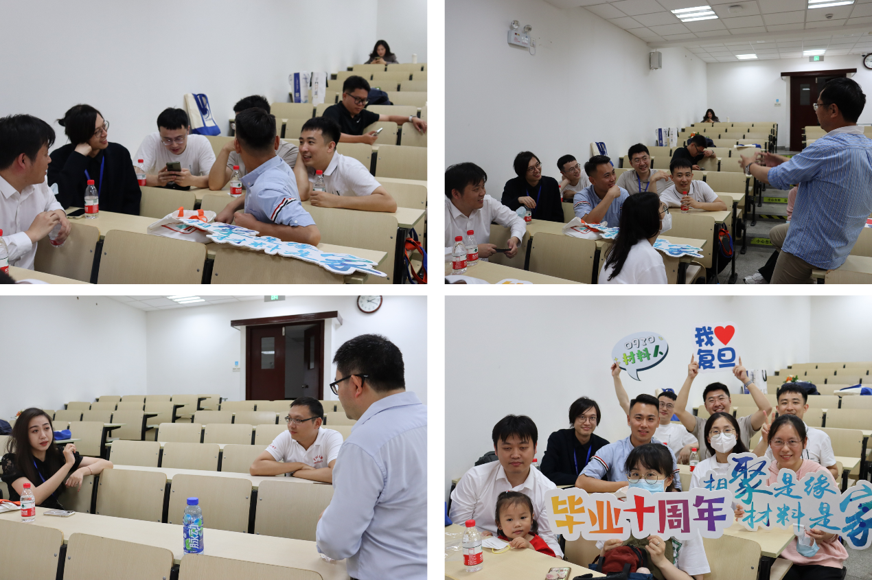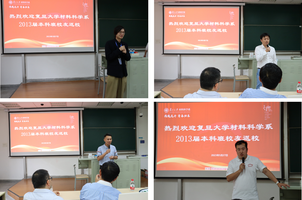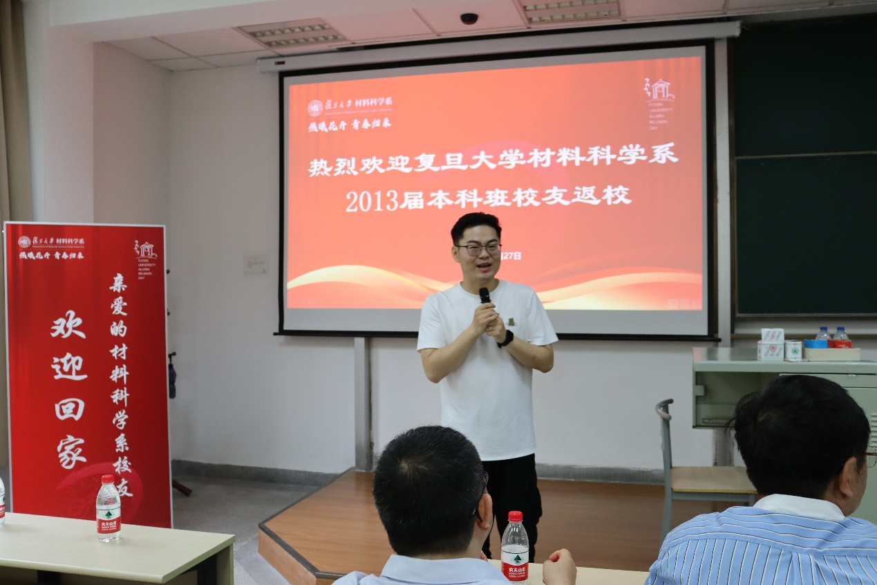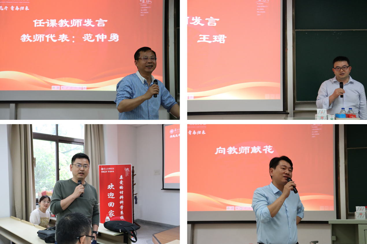 校友们发言结束后,范仲勇老师和王珺老师作为任课教师代表致辞。范仲勇老师曾给13届校友们上过《高分子物理》,王珺老师上过《数学物理方法》。毕业多年,校友们仍对两位老师当时的授课场景印象深刻,返回母校,他们表示也想见见这两位老师,以表达对他们当年殷切教导的感激之情。范老师和王老师表示,每位校友在各行各业的发展和成就值得欣慰,希望大家常回家看看,牢记“相聚是缘,材料是家”,鼓励大家作为复旦的学生,在工作中要有信心,同时也要不忘初心,才能在未来的人生中走得更高更远。副系主任倪峰老师和系党委副书记王珏老师也向校友们表达了热烈的欢迎和亲切的问候,并衷心地感谢大家长期以来对性爱网 的关心和支持。