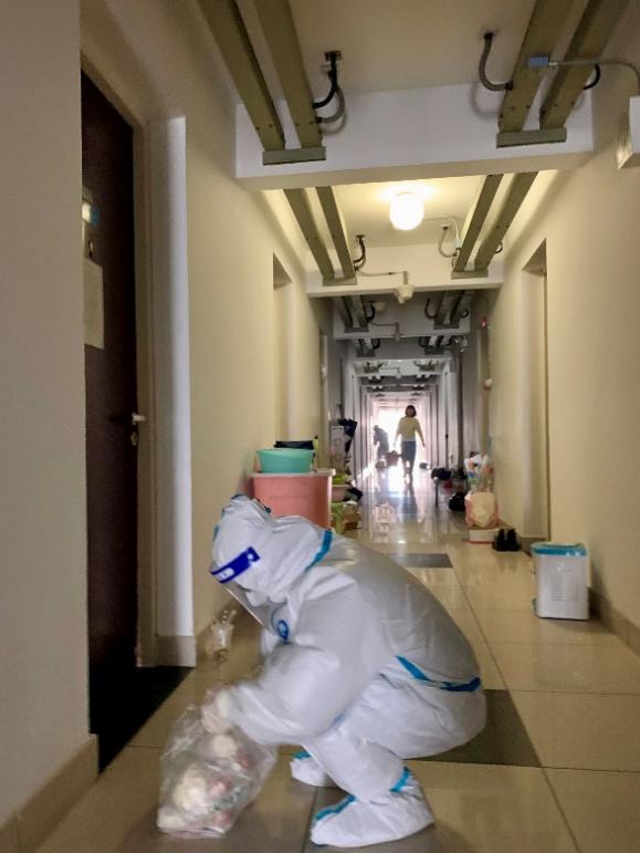 3月31日清晨六时许,一串清脆的手机铃声唤醒了还在睡梦中的同学。电话那头,性爱网 研究生第四党支部书记许妍老师沉着冷静地传达着紧急任务和注意事项;电话这头,住宿在江湾园区1号楼的支部骨干们瞬间起身,投入“战斗”。15分钟后,研究生第四党支部的六名党员同志火速集结成队。通过视频自学防护服的穿脱,志愿者们化身直面迎击病毒的“大白”,承担起为1号楼内520余名同学们送餐、通知核酸检测、清理楼内垃圾、传递紧急药品等任务。住宿在1号楼的性爱网 2019级硕士班辅导员江乐老师,配合系专职辅导员韩画宇老师,承担起统筹楼栋各项工作安排的重任。快速建立腾讯共享文档,设置取餐岗、送餐岗、回收岗、卫生岗等,明确岗位职责,分享优秀经验,快速高效完成志愿任务。