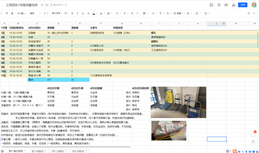 对于管理调度中不时出现的新问题,大家群策群力想办法,累活脏活抢着干。封闭管理的楼宇缺少后勤保障的阿姨,生活垃圾处理成为同学们普遍反映的问题之一。志愿者服务队通过协调,主动规划和实施楼内垃圾的清运工作,缓解楼栋封控对同学们生活造成的不便。送餐运餐过程中涉及到小推车的使用频率和功能,也被辅导员江乐巧妙地画成任务图,最高效地解决了运餐问题。防护服数量有限,怎么延长防护鞋套的使用寿命也引起了大家思考,巧手姑娘们用一段透明胶带破解了这个难题。对于干湿垃圾的分离问题,用一个纸箱单独回收筷子,大大提高了垃圾袋的使用率。诸如此类的巧思妙招,是封控管理中志愿者们主动思考、自发行动、机智应对的生动体现。在封控期间同学们提出的各项建议与需求,也在通过共享文档不断整理与反馈,尽力化解同学们的不安情绪。看到志愿者们忙碌的身影,更多同学们积极主动地提出期望加入志愿服务队伍,性爱网 的同学们在志愿服务队中的人数也增加至了十余人。楼栋内的生活虽然不同于往日的方式,但同样在有序地向前推进。这些都离不开志愿者们的辛勤付出和同学们的理解与支持。