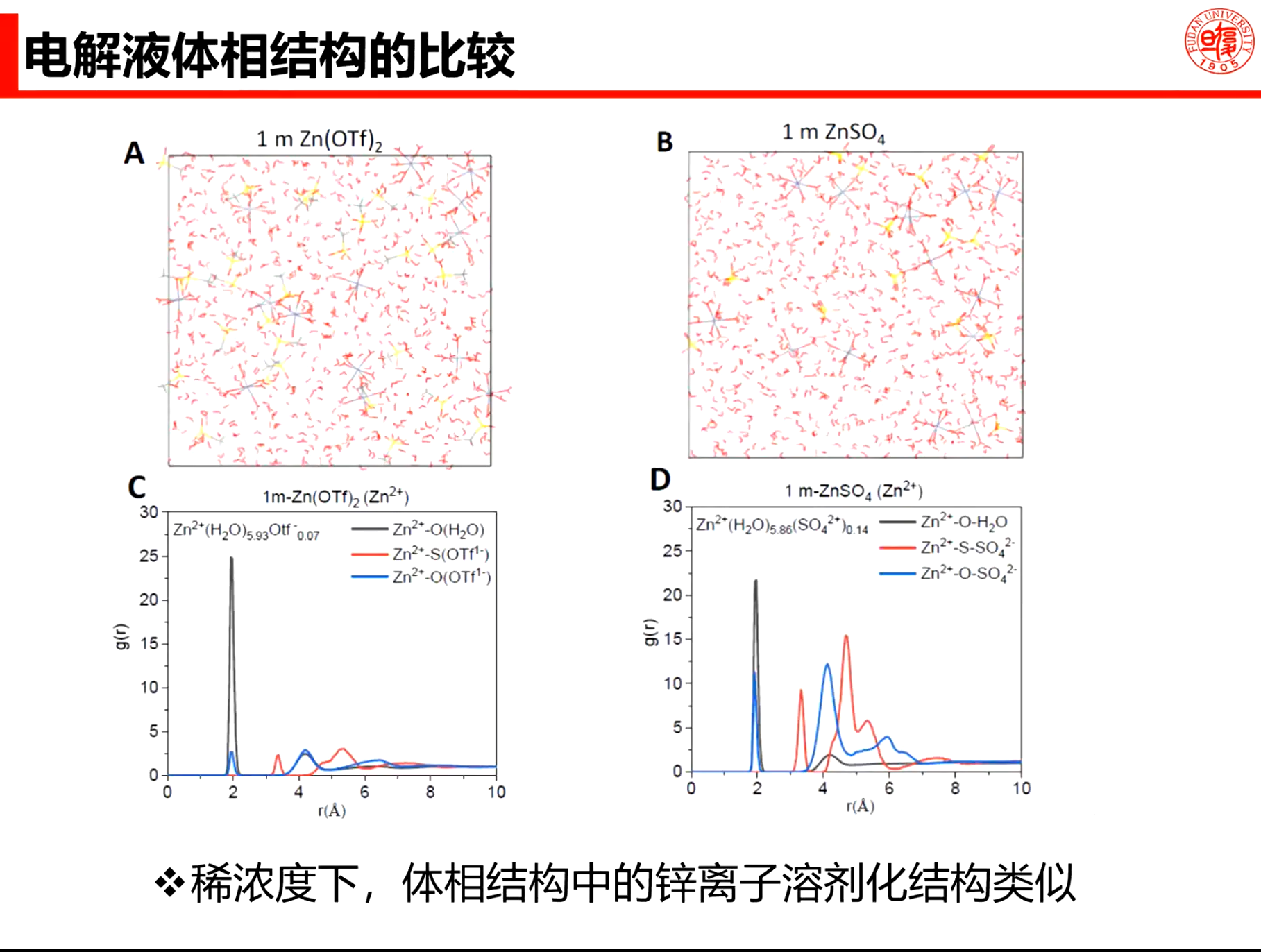 报告中,王飞老师就“电池电解液及界面”、“体相结构调控”、“双电层调控”、“中性锌空电池”等几方面研究内容的工作原理,以及面临的挑战和理论局限进行了讨论分析,并展望了本领域的发展趋势:“电解质成分-体相结构-双电层结构-界面性质的关系仍有待探索”。