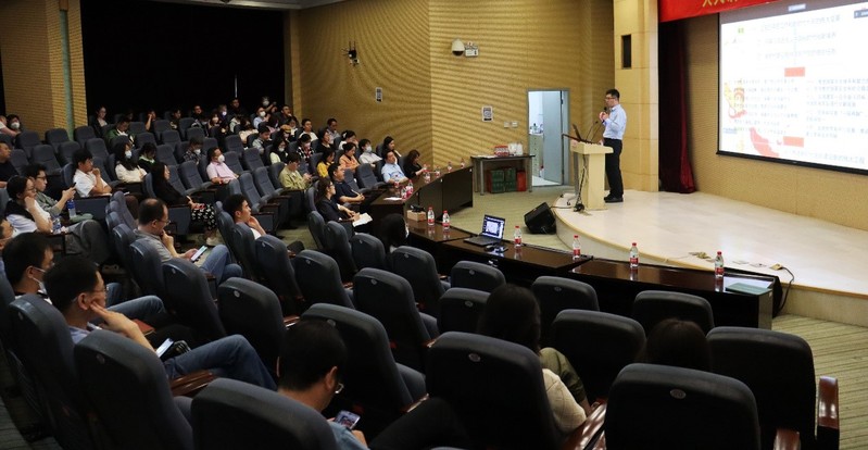 李鲁博士围绕“新时代经济发展回顾”“中心任务、发展目标与环境形势”“加快构建新发展格局,着力推动高质量发展”三部分内容对习近平新时代中国特色社会主义思想进行系统宣讲与深入阐述。李鲁博士在报告中强调:新发展理念是我国现代化的指导原则,着力推动创新、协调、绿色、开放、共享全面发展,牢牢把握以新发展理念和新发展格局引领高质量发展的原则,做到“质的有效提升”“量的合理增长”。李鲁博士认为要完成以中国式现代化全面推进中华民族伟大复兴的中心任务,明确我国发展目标,抓住面临的战略机遇。最后,李鲁博士强调要始终坚持“五个必由之路”,牢牢把握“三大本领”,全党全军全国各族人民要紧密团结在党中央周围,牢记空谈误国、实干兴邦,坚定信心、同心同德,埋头苦干、奋勇前进,为全面建设社会主义现代化国家、全面推进中华民族伟大复兴而团结奋斗!