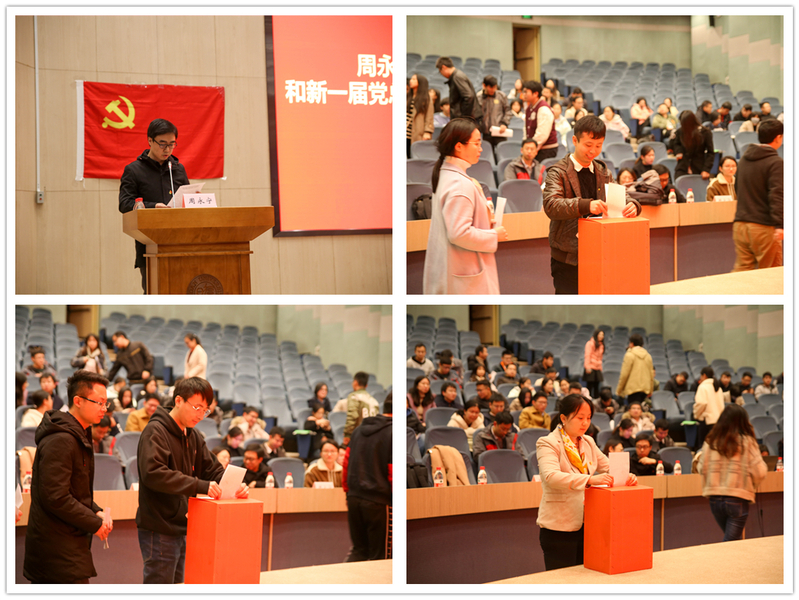 工作人员宣读大会选举方法(草案)和监票人、计票人名单(建议)后,大会表决通过了《中国共产党性爱网 学生党总支换届大会选举方法》和总监票人、监票人、计票人名单。经到会党员无记名差额投票,选举王珏、王剑中、仝洁、许妍、江乐、龚嶷、谢余凤(按姓氏笔划排序)等7人为新一届学生党总支委员。