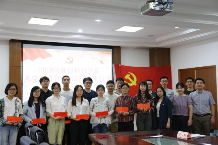 活动的第二部分是2019年秋季入党积极分子培训班结业仪式。许妍老师首先对2019年秋季入党积极分子培训班工作进行了回顾。她介绍了积极分子培训班的设立初衷、育人目标和组织形式,并总结了本次积极分子培训班课程开展情况及教学效果。材料系二级党校采用了学时制滚动培训的形式,只要确定为积极分子,随时可以加入培训班,修满相应学时即可结业,这样的培训方式不仅便利了不同校区、不同年级的学员制定学习计划,也最大程度激发了学员的学习能动性,兼顾统一性和个性化的培训要求。
