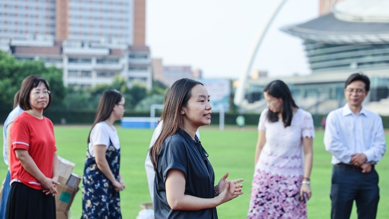 下午四点半,系主任孙大林,党委书记包涵,副系主任蒋益明、梅永丰、倪峰,党委副书记王珏,学工组长许妍等老师一行,在辅导员陈蕾的陪同下来到南区训练场。