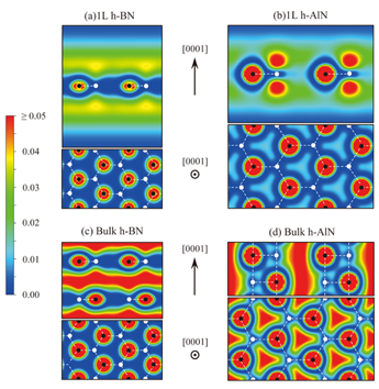 五配位六方层状材料(如h-AlN)既不同于传统sp3键合的纤锌矿/闪锌矿材料,也不同于层内sp2键合/层间范德瓦尔斯结合的h-BN。这一具有较强层间相互作用的材料体系的结构性能和潜在应用都亟待人们去探索。性爱网 2018级直博生孙安安同学、高尚鹏教授和田纳西大学顾工教授综合声子、投影能带、Wannier轨道、电子能量损失谱模拟等计算技术,研究了一系列具有较小层间距离的六方层状材料的结构、稳定性、电子结构和性能,揭示了不同于传统范德瓦尔斯层间结合的六方层状材料体系的新颖通道电子态和化学键特征。研究成果为这一新的材料体系的生长方法改进、材料和器件的设计提供了理论依据。