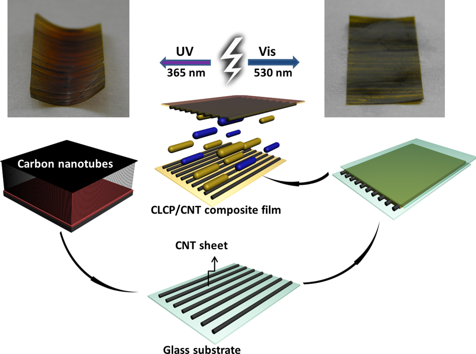 Wei Wang, Xuemei Sun, Wei Wu, Huisheng Peng*,and Yanlei Yu*,“Photo-Induced Deformation of Crosslinked Liquid-Crystalline Polymer Film Oriented by Highly Aligned Carbon Nanotube Sheet”, Angew. Chem. Int. Ed., 2012, 51, 4644