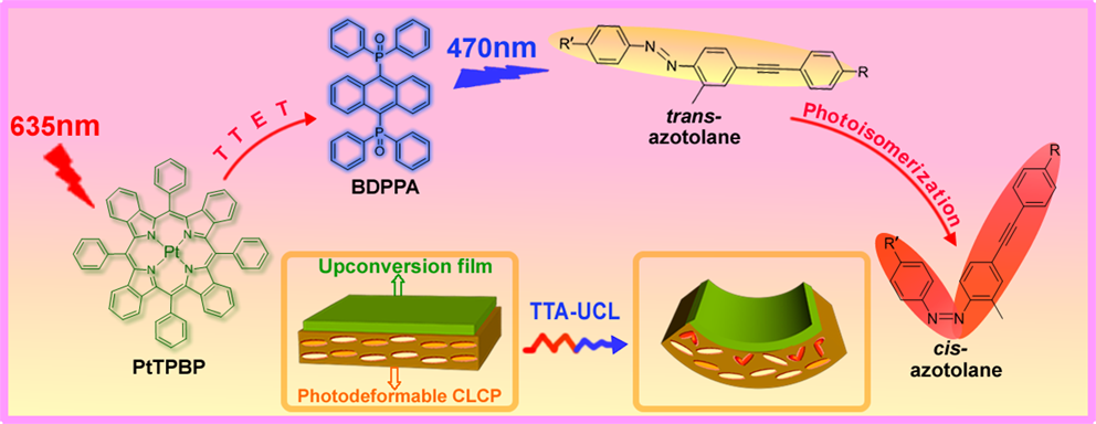 Zhen Jiang, Ming Xu, Fuyou Li∗, Yanlei Yu∗,“Red-light Controllable Liquid-Crystal Soft Actuators via Low-power Excited Upconversion Based on Triplet-Triplet Annihilation”,J. Am. Chem. Soc., DOI: 10.1021/ja406020r.