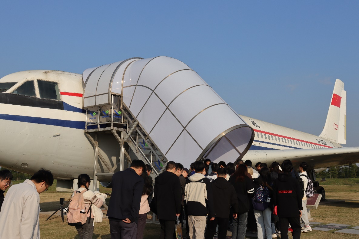 首先,中国商飞工程师为材料系师生介绍了中国商飞浦东基地的发展蓝图,并带领大家参观了“永不放弃”雕塑,领略了商飞人自强不息、砥砺前行的精神。在工作人员的引导下,材料系师生登上“运十”飞机,参观飞机内部构造,了解“运十”飞机的历史。材料系师生在驾驶舱和客舱参观良久,并在雕塑旁合影留念。