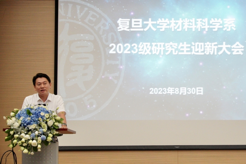 2023级研究生迎新大会在江湾校区先进材料楼报告厅举行,系党政领导、教师代表、校友代表,全体2023级研究生参加迎新大会。大会由系党委副书记王珏主持。