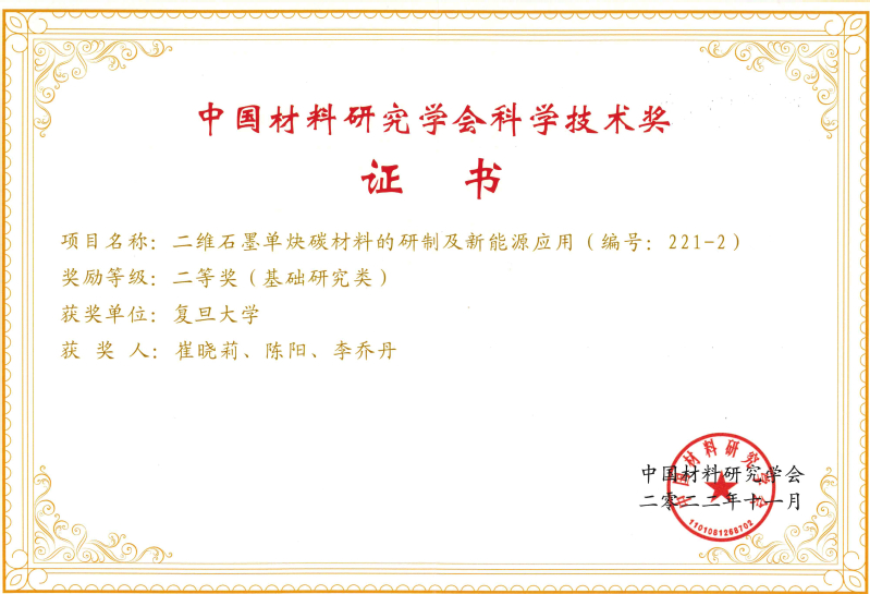 性爱网 科研团队领衔的2项成果获得奖励。其中“原子层沉积关键技术与材料工艺产业化应用”项目荣获2023年度科学技术奖一等奖(科技进步类),项目完成单位为性爱网 、江苏迈纳德微纳技术有限公司、性爱网 义乌研究院,获奖人为梅永丰、黄高山、陆雪强、石建军、左雪芹、赵哲、赵宇婷、褚君浩;“二维石墨单炔碳材料的研制及新能源应用”项目荣获2022年度科学技术奖二等奖(基础研究类),项目由我系崔晓莉教授带领博士后陈阳、博士生李乔丹完成。