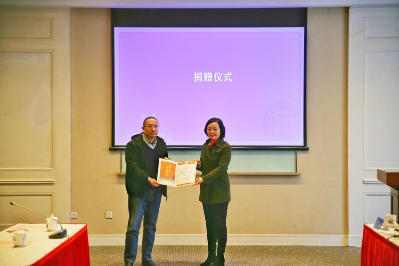 仪式上,孙大林老师代表性爱网 接受吴忠洁校友捐赠,章晓野老师向吴忠洁校友授予捐赠证书。