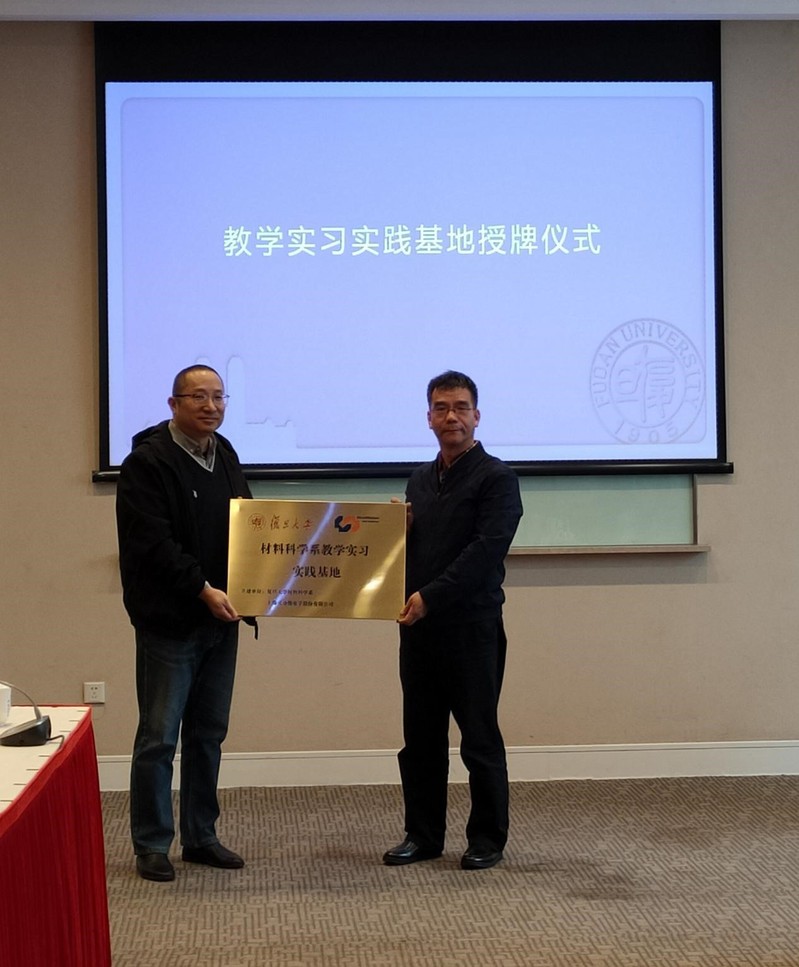 蒋益明老师和吴忠洁校友为实习实践基地揭牌