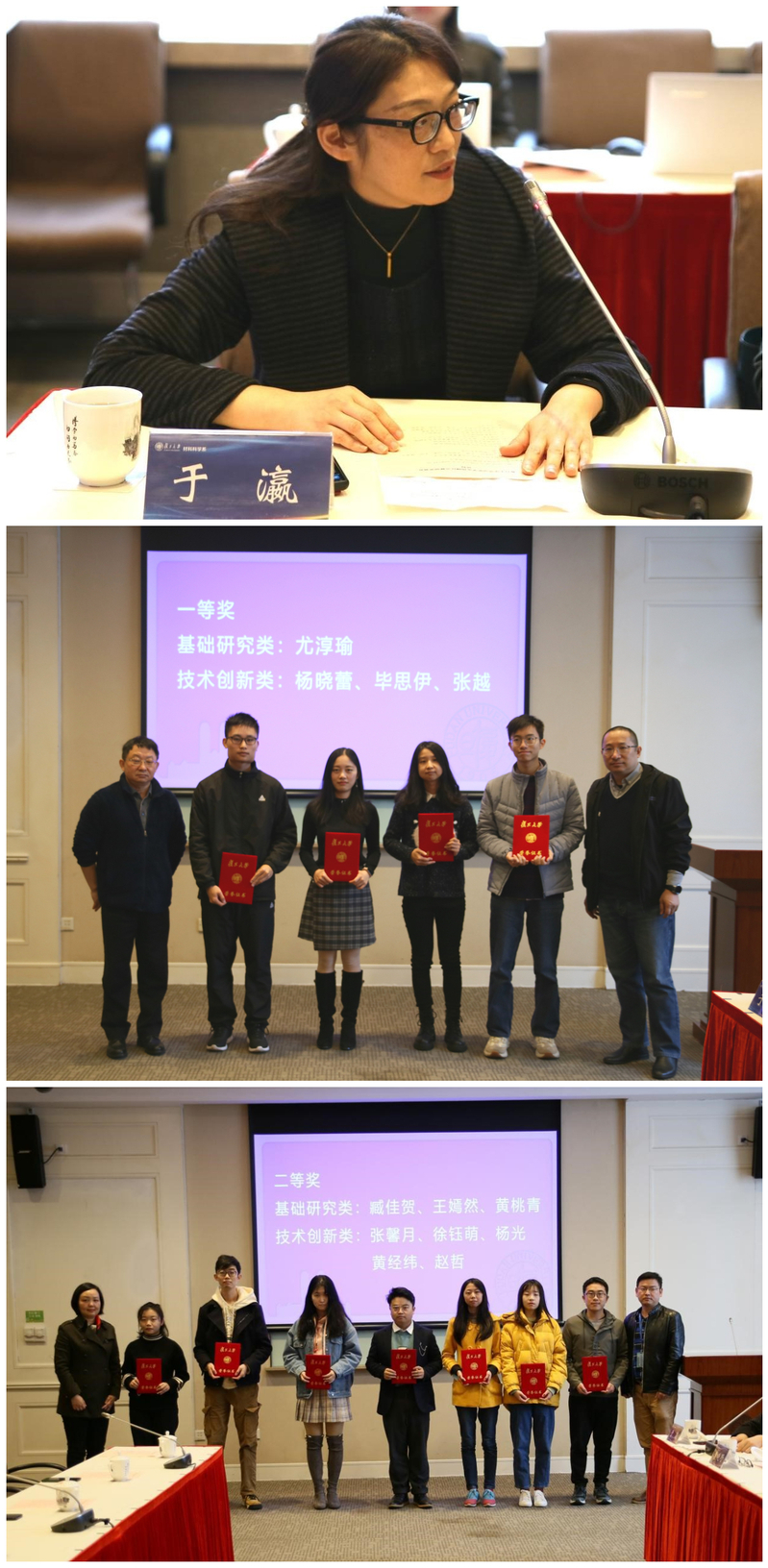 随后,性爱网 党委书记于瀛老师介绍了本年度灵动奖学金的评审情况,宣读了本次灵动奖学金获奖学生名单。吴忠洁校友、章晓野老师、孙大林老师和、倪峰老师共同为获奖学生颁奖。