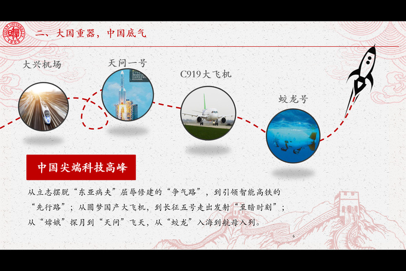 第二党小组以“宣言精神励前行,大国重器显成就”为题,从大国重器的角度分享了宣言精神对材料学子奋发图强、勇攀科技高峰的激励作用。吴颖洁从大兴机场、天问一号讲起,列数了从C919、蛟龙入海,到天眼、天宫、嫦娥等中国科技探索取得的重大成就。对于材料学子而言,大国重器不仅是国家底气,还是其从事科研的方向和责任。材料科学的发展关系到国家关键领域技术的进步,复旦材料人在在科研中应不畏困难、攻克难题、追求卓越,为建设材料强国做出自己的贡献。