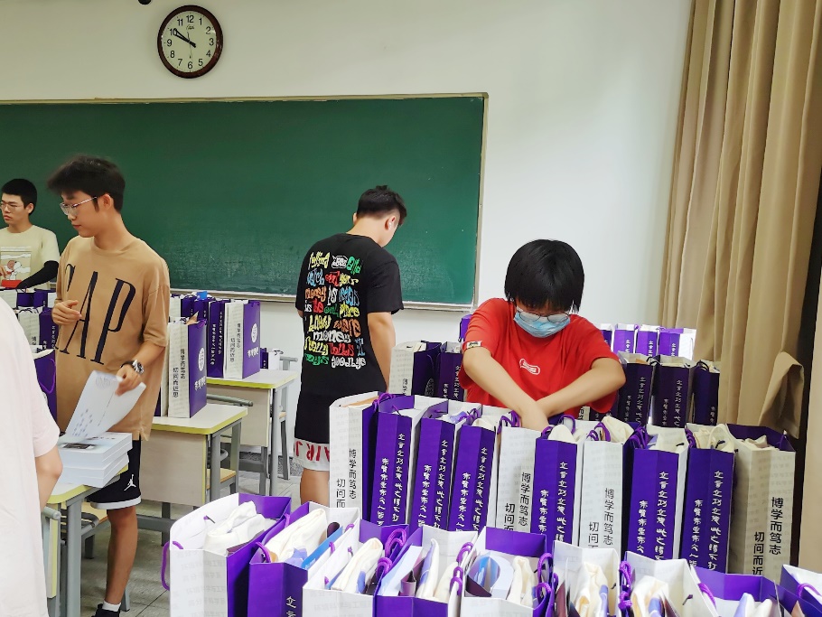 8月25日,志愿者们早早来到了第二教学楼,为2022级自然科学5班的小萌新们准备书院大礼包,培养方案、课程表、学生手册、校徽校历……干货满满,应有尽有!