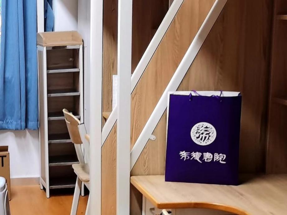 志愿者们将礼包运回南区宿舍,把礼包一一摆放在新同学的宿舍内,为迎接新生的到来做好充分准备。