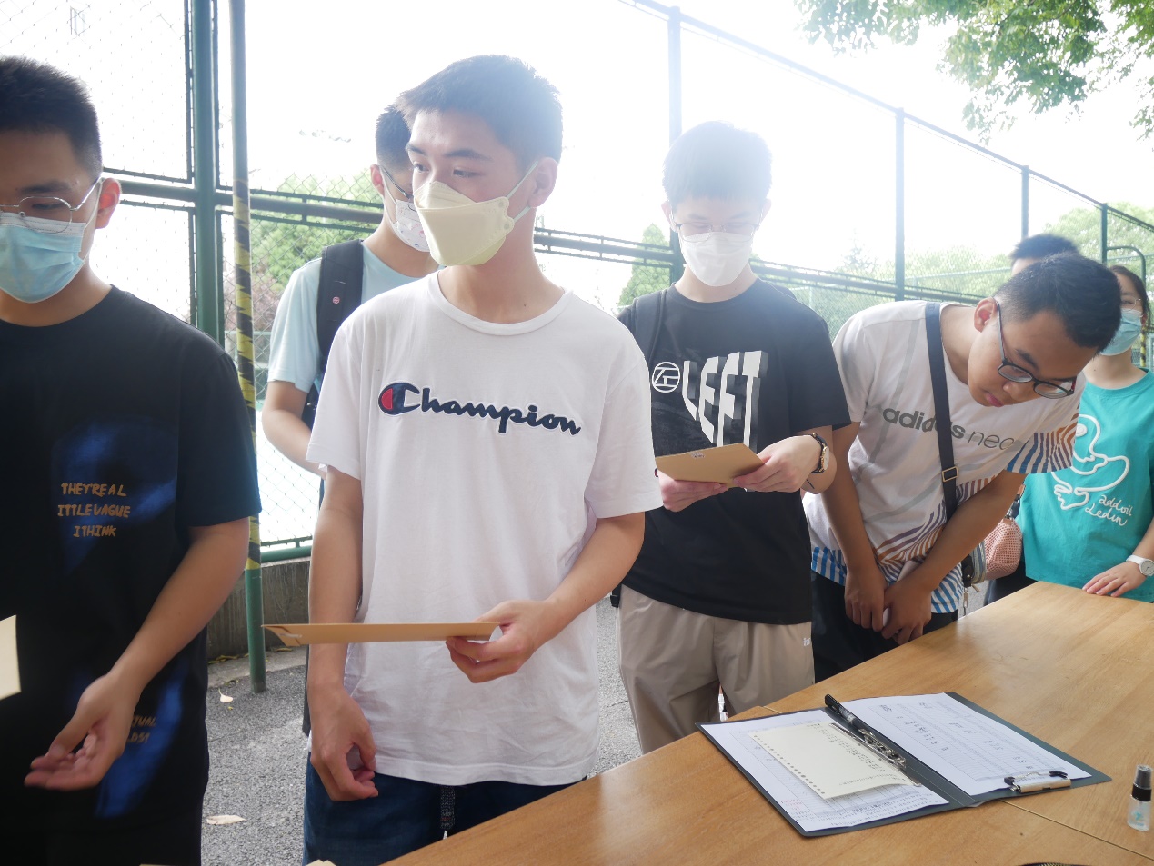 (同学们在排队签到,领取信封和书院服)