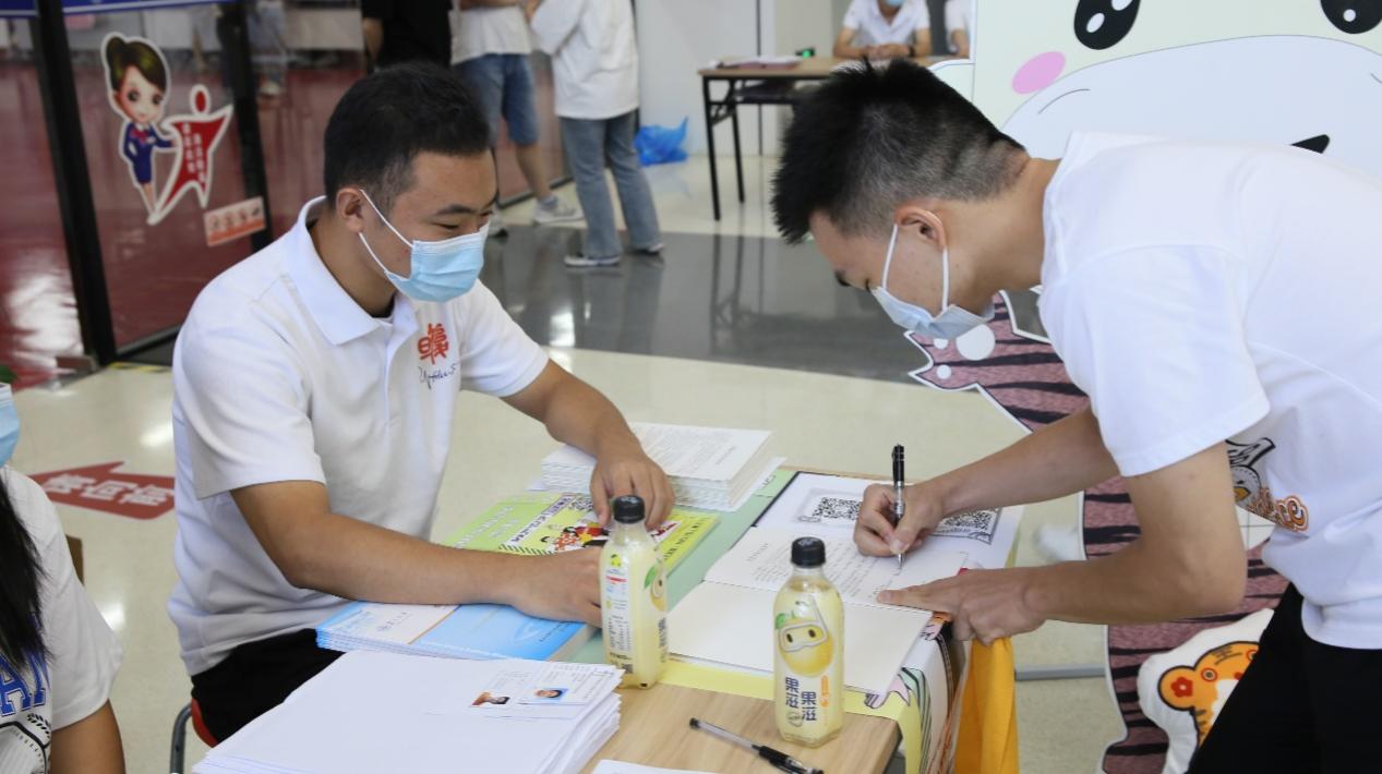 前来报到的新生按照流程有序地核对信息、领取材料。