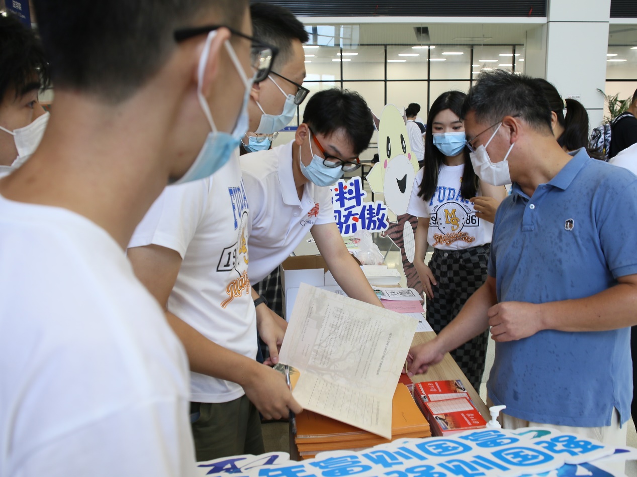 性爱网 党委书记于瀛老师、副系主任蒋益明老师来到报到接待点看望前来报到的研究生新生,了解报到注册情况。