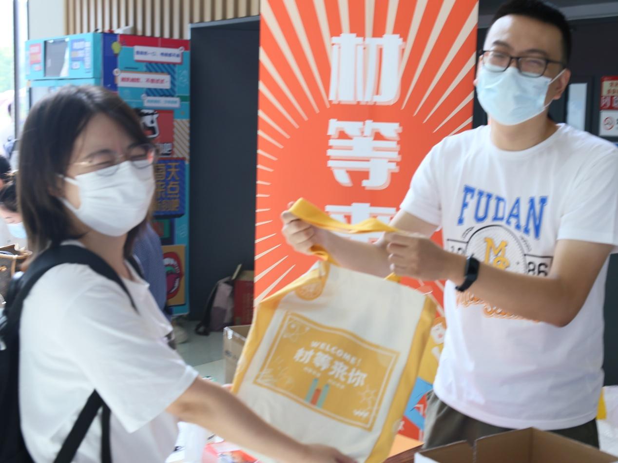 研究生、同时是新生班辅导员的范佳晨老师为每一位同学准备了贴有个人信息的校名信封,最重要的一卡通就在里面,要好好保管哦!